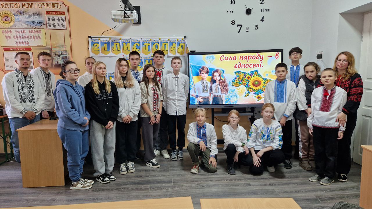 !Напередодні Дня Гідності та Свободи в Чернівецькому навчально-реабілітаційному центрі № 1 відбулася виховна година, лейтмотивом якої й стала думка: “Сила народу – в єдності!” Бо тільки разом ми, українці – гідний, волелюбний і відважний народ, який завжди захищає свою гідність, свободу і честь, – здобудемо перемогу! Слава Україні! Героям слава!