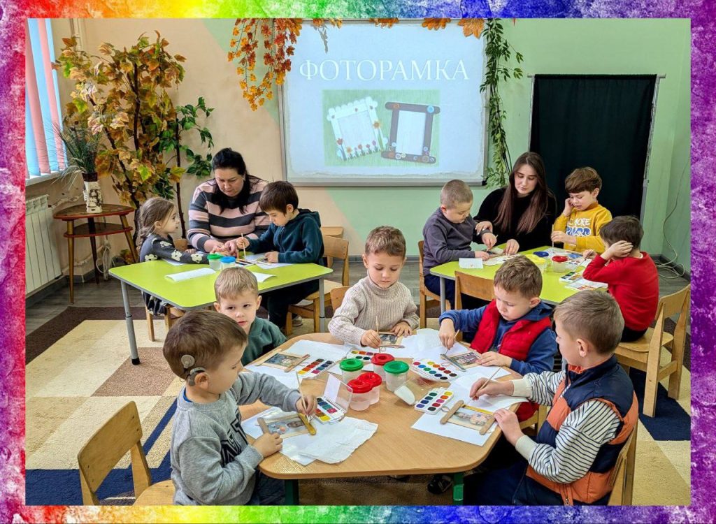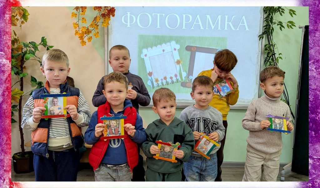 Малята власноруч виготовляли яскраві фоторамки, в які кожний розмістив свою фотографію — маленьку частинку дитинства, таку щиру та неповторну. Працюючи пензликами, добираючи кольори й прикрашаючи рамочки, діти не тільки поринули у творчість, вони відчули, що їхні ідеї важливі, а їхній світ — особливий!
