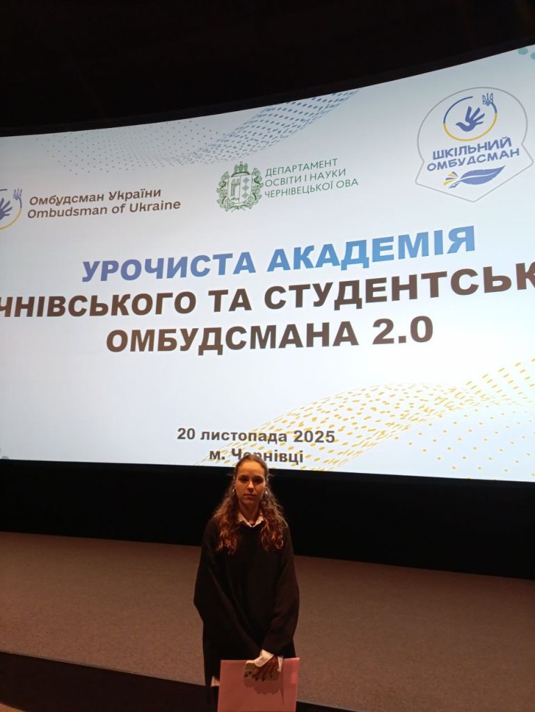 З нагоди відзначення Всесвітнього дня дитини проведено урочисту академію Шкільних та Студентських Омбудсманів 2.0 на базі Культурно-мистецького центру імені Івана Миколайчука, до якого долучилася Заступниця Омбудсмана Чернівецького обласного навчально-реабілітаційному центру № 1 Неля Саветюк.