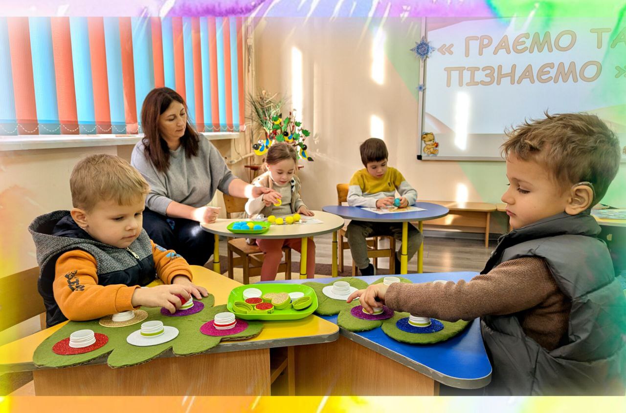 Під час заняття дошкільнята виконували різноманітні завдання з яскравими матеріалами, сортували елементи, викладали візерунки та знайомилися з новими формами і кольорами.