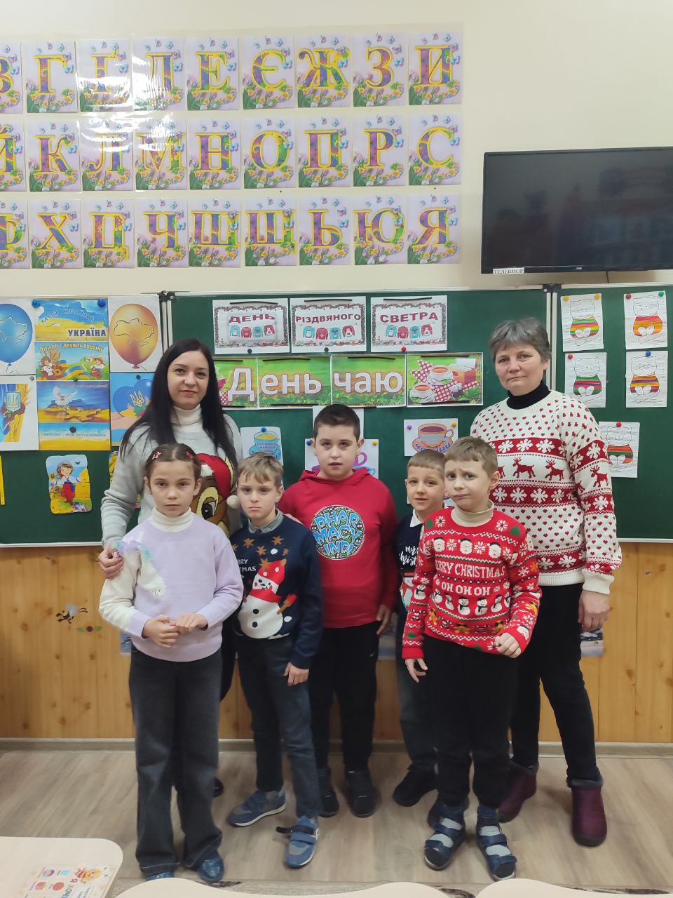 Тематичний день у 1-Б класі: День різдвяного светрика та Міжнародний день чаю