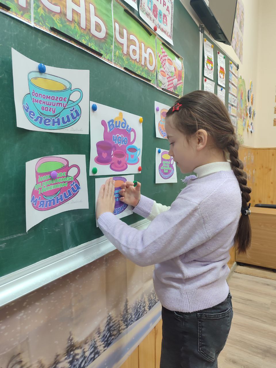 Під час заняття учні із задоволенням виготовляли тематичні аплікації, проявляючи фантазію та творчість. Вони познайомилися з різноманітними видами чаю, дізналися цікаві факти про нього і разом насолодилися теплим ароматним чаєм.