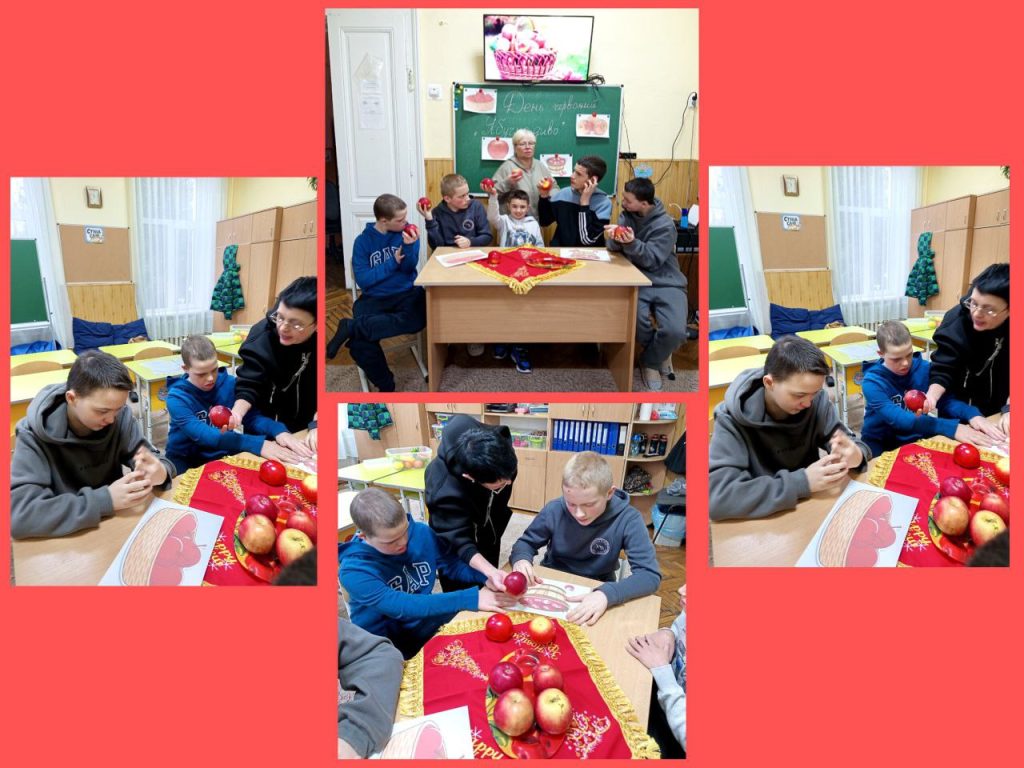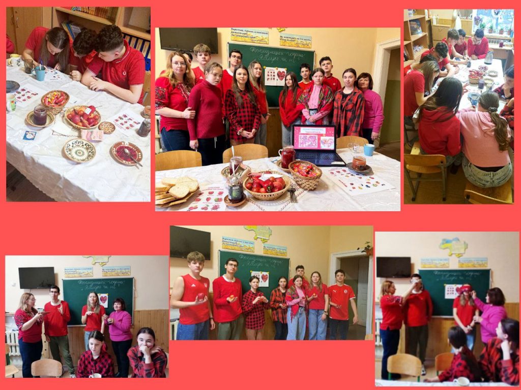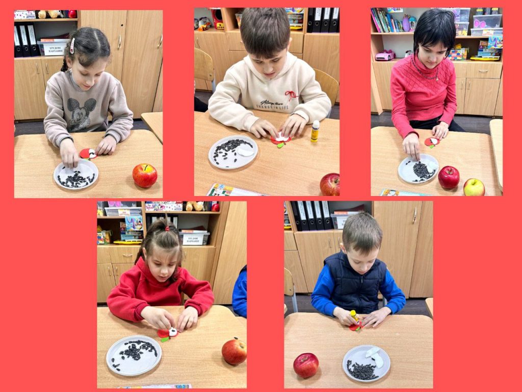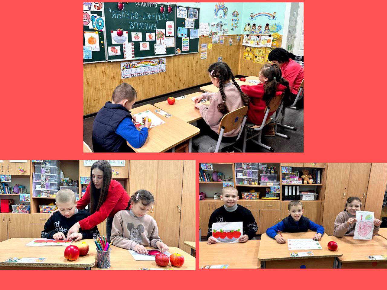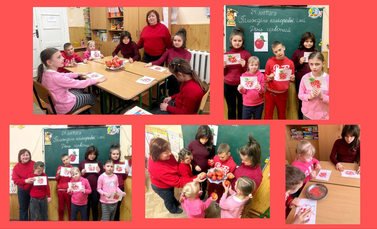 День другий. Сьогодні день був присвячений фруктам, овочами, ягодам червоного кольору. Багато уваги звернули на яблука: куштували різні сорти, вивчали за допомогою мікроскопа текстуру плодів, проводили експерименти, створювали аплікації, малюнки, поробки, брали участь в тематичних іграх. Усі заходи минули цікаво й корисно!