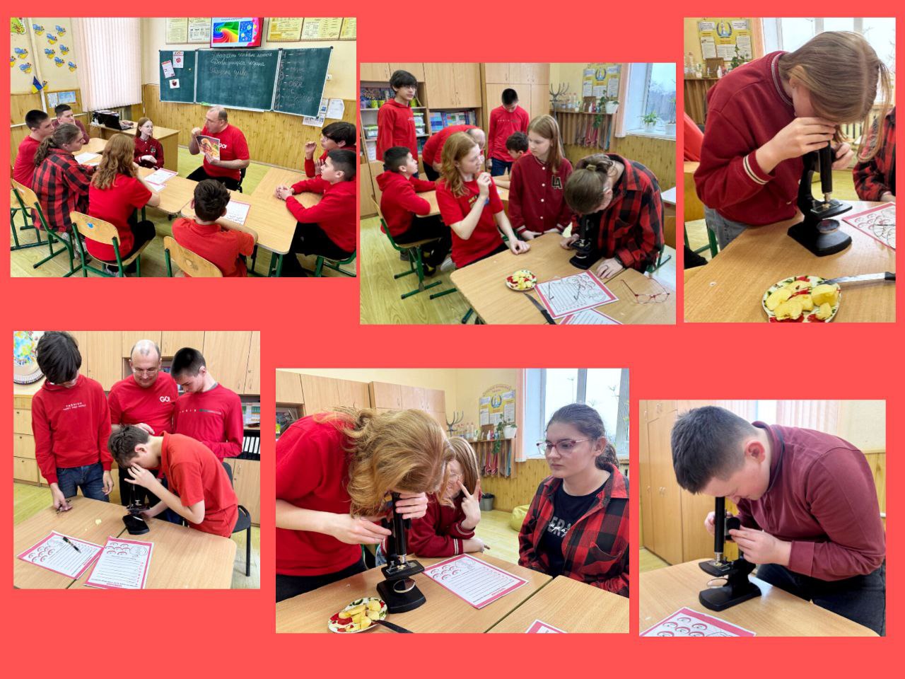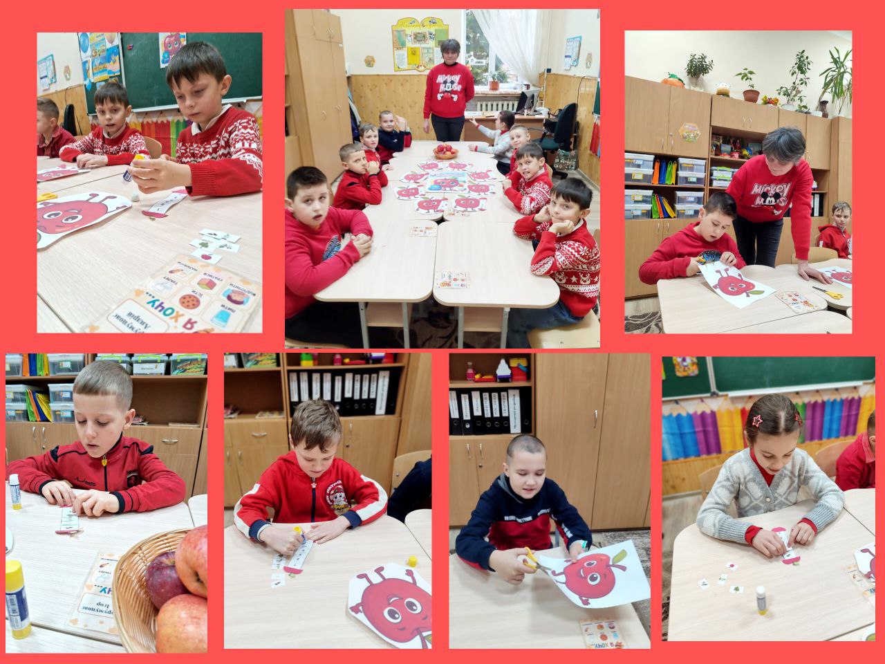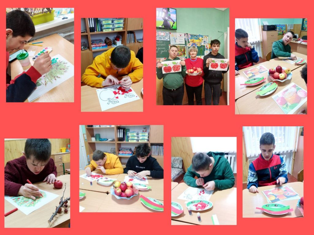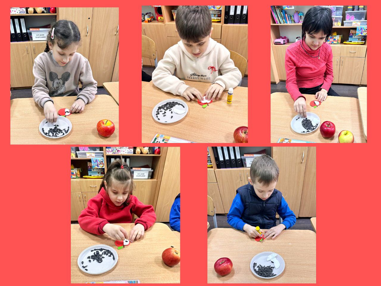День другий. Сьогодні день був присвячений фруктам, овочами, ягодам червоного кольору. Багато уваги звернули на яблука: куштували різні сорти, вивчали за допомогою мікроскопа текстуру плодів, проводили експерименти, створювали аплікації, малюнки, поробки, брали участь в тематичних іграх. Усі заходи минули цікаво й корисно!