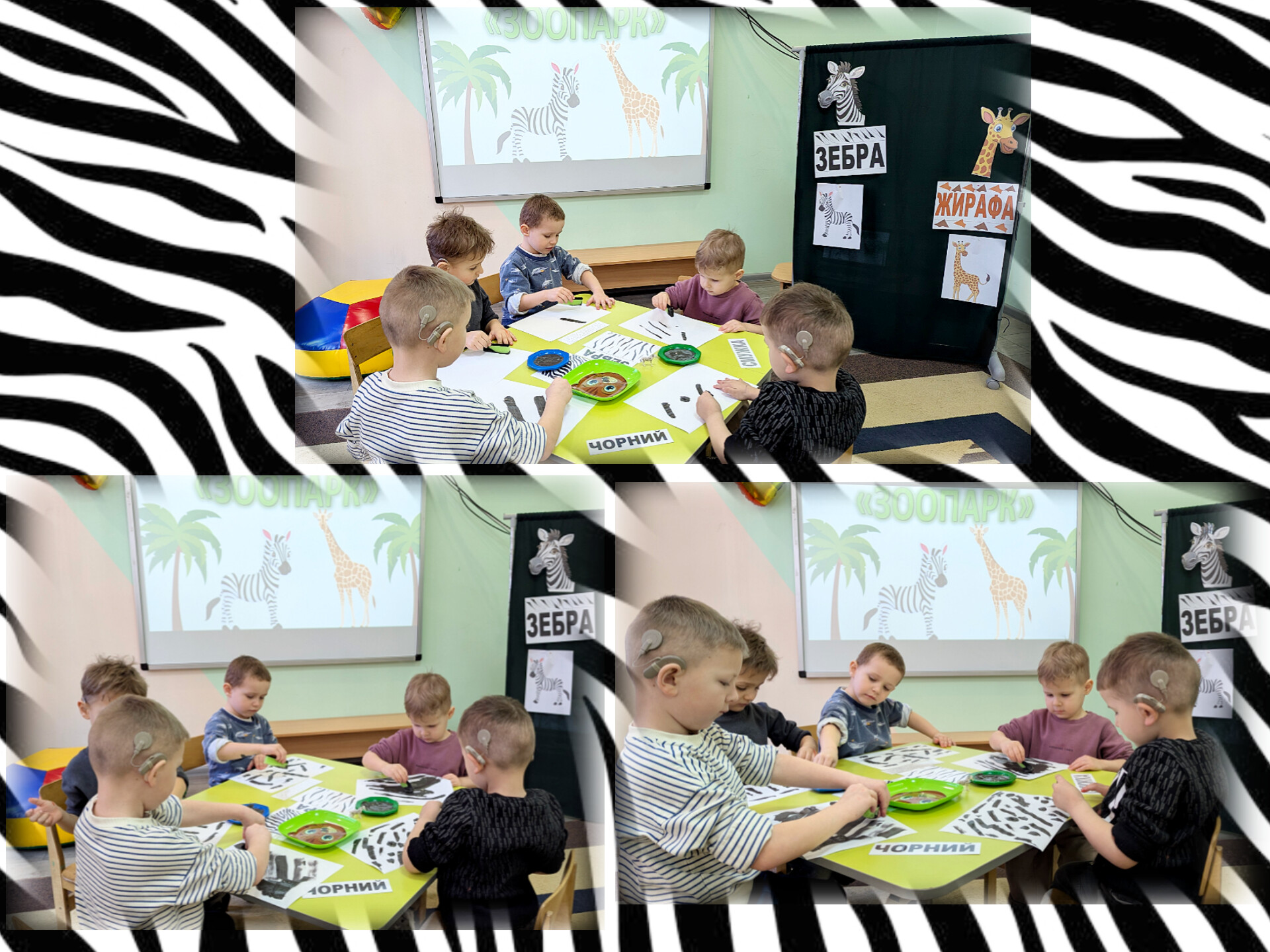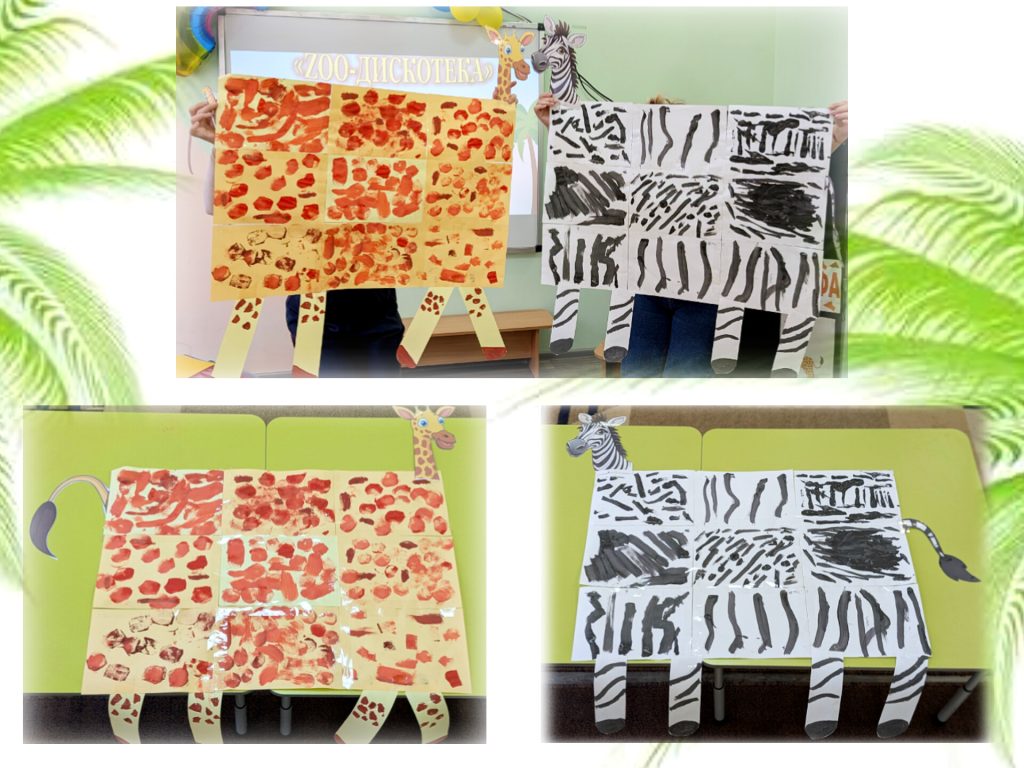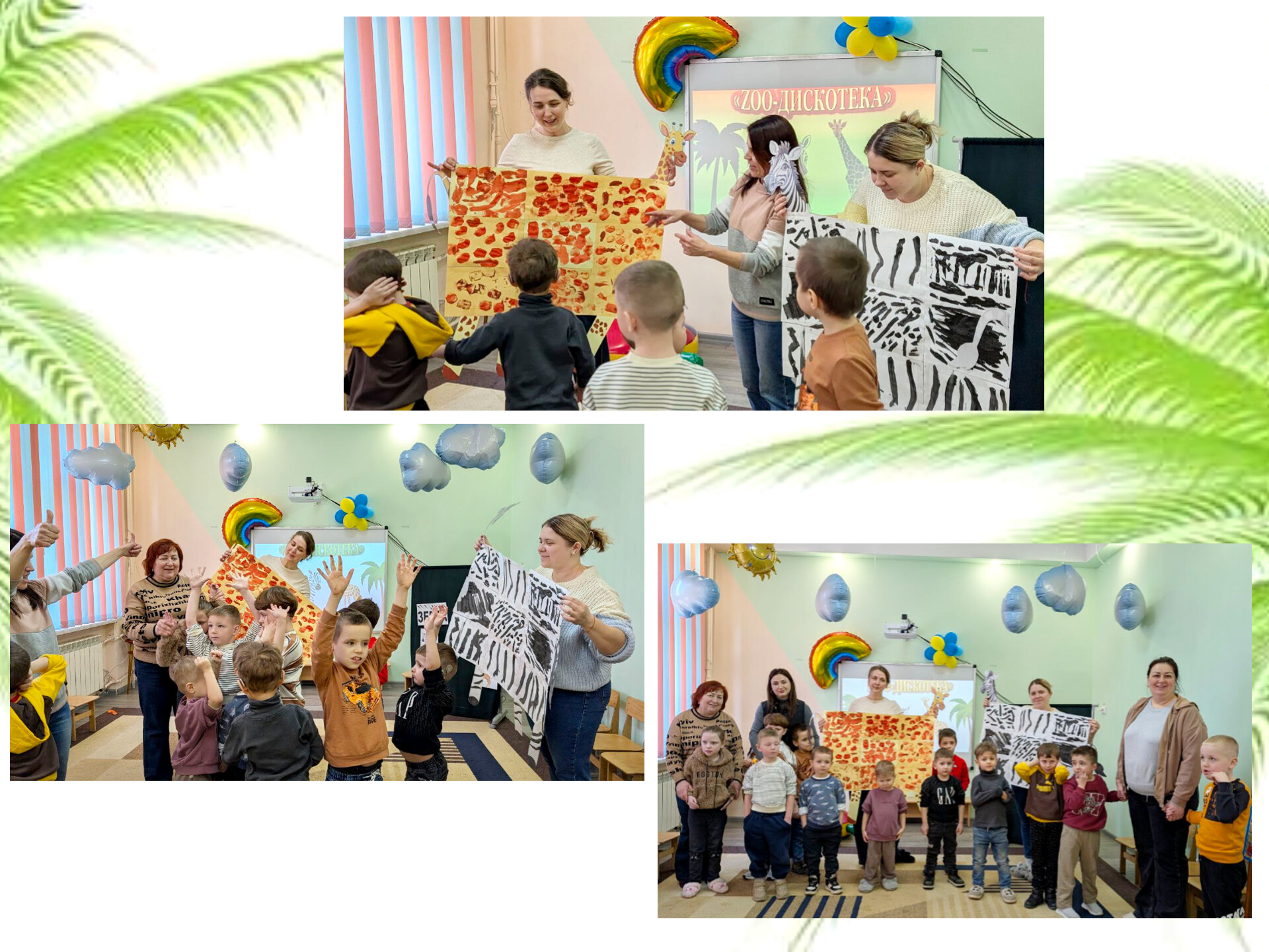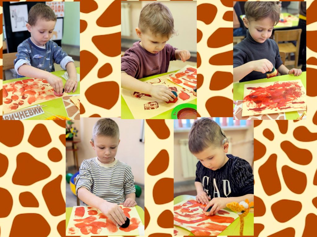 Сьогодні на дошкільному відділенні нашого центру відбувся творчий день, під час якого діти спільно виготовили жирафу та зебру в цікавій художній техніці. Малята досліджували принти тварин — смужки зебри та плями жирафи, уважно їх розглядали й намагалися відтворити у власних роботах. У процесі діяльності діти разом обговорювали забарвлення тварин, повторили їхні назви та назви частин тіла. За допомогою різних технік малювання вихованці створювали плями й смужки, а також працювали в команді, з’єднуючи свої роботи у велику спільну композицію. На завершення заняття діти виконали танцювальні вправи разом зі створеними тваринами, отримавши багато радості та позитивних емоцій.