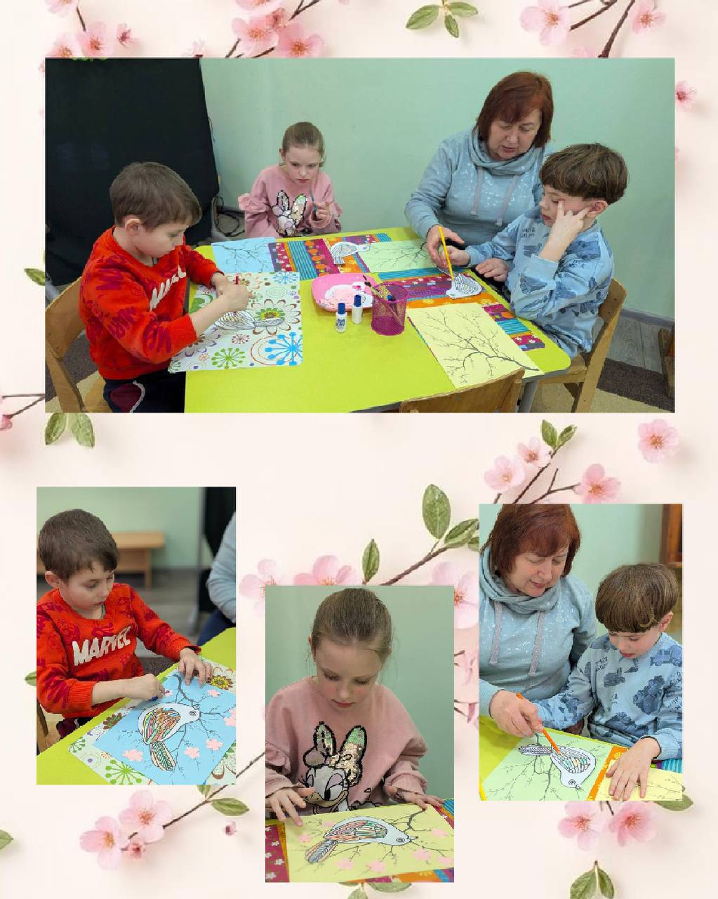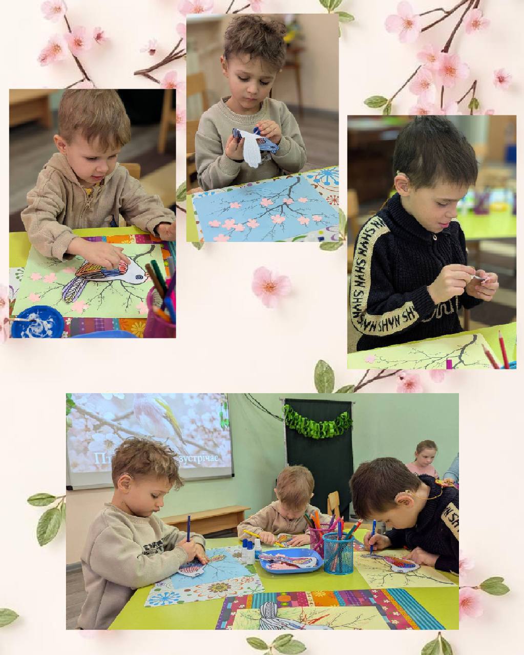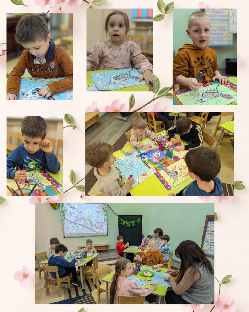 Також діти виконали творче завдання — розмалювали тематичну ілюстрацію з рядками Державного Гімну України. Свої роботи вони старанно й охайно оформили, створивши яскраву добірку дитячих малюнків.