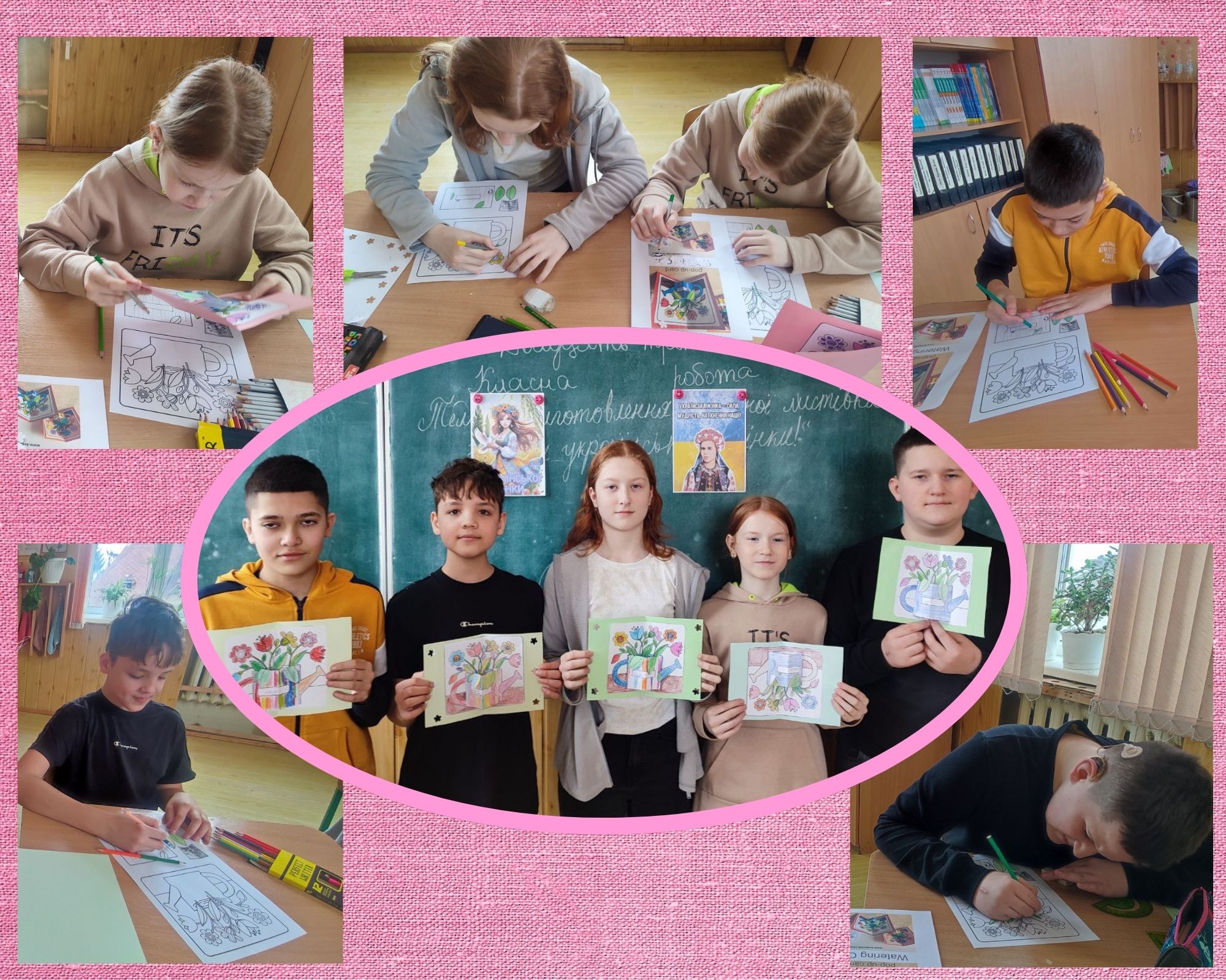 Учні 7-А, 8-А, 8-В класів виготовляли об’ємні вітальні листівки до Дня української жінки. Діти продемонстрували креативність, естетичний смак та акуратність у виконанні робіт. Кожна листівка стала маленьким символом поваги до української жінки.