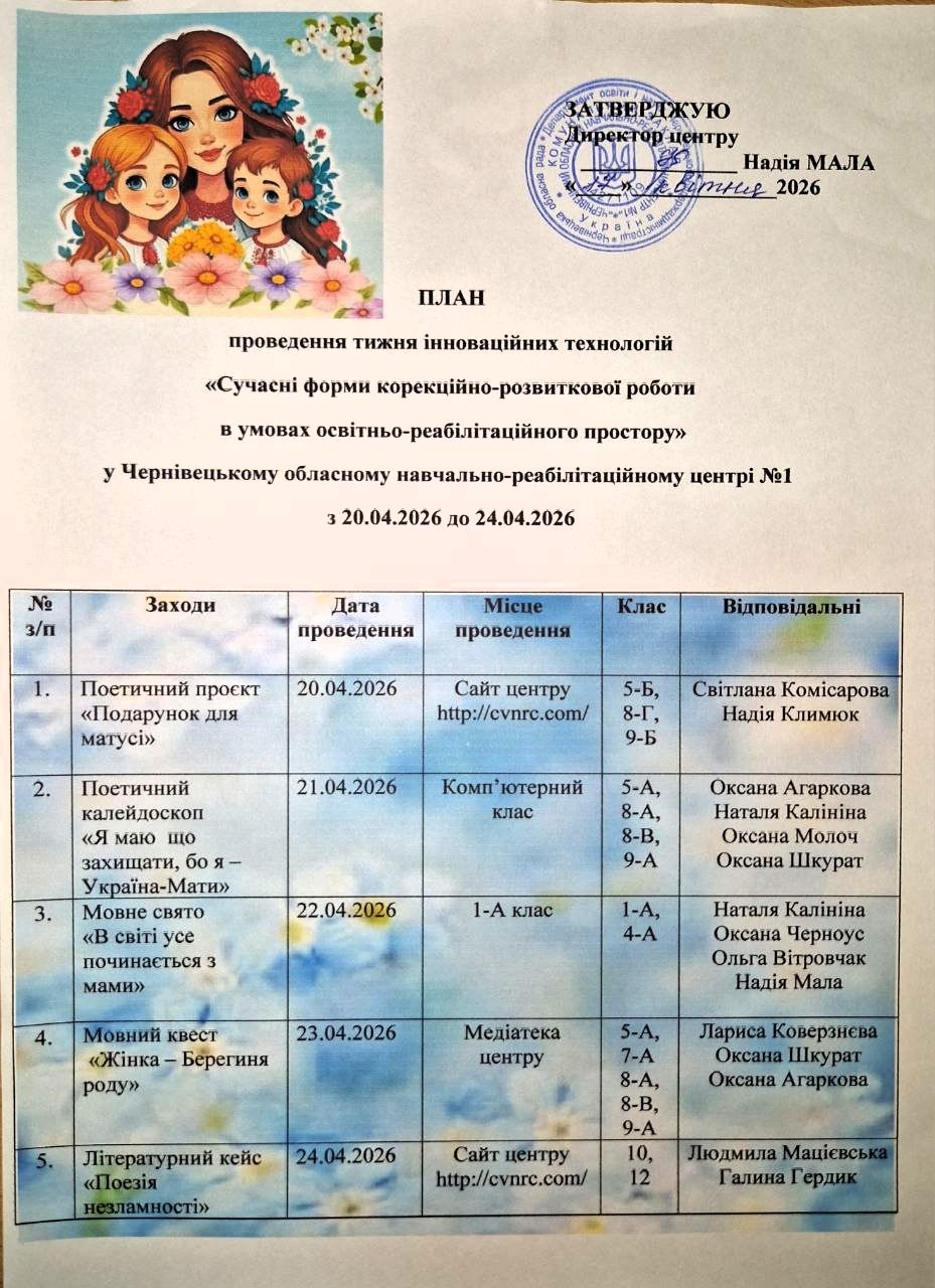 З 30 березня до 3 квітня в Чернівецькому навчально-реабілітаційному центрі № 1 проходив Тиждень духовності. У його межах вихованці закладу взяли участь в онлайн-челенджі “Цитата, яка змінила мій світ”, ознайомилися з виданнями книжкової виставки “Духовна спадщина віків”, відвідали виставку писанок у Центрі Культури “Вернісаж” “Без коріння саду не цвісти”, створили малюнки й обереги для воїнів Збройних Сил України. Найголовніше – під час годин спілкування сфокусувалися на вічних цінностях добра, милосердя, любові до ближнього, родини, Батьківщини, наснажилися мудрістю Святого Письма.