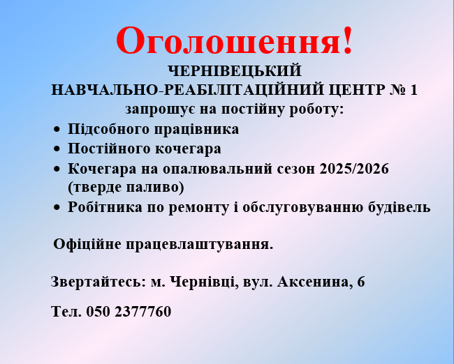 КОМУНАЛЬНИЙ ЗАКЛАД "Чернівецький навчально-реабілітаційний центр № 1"