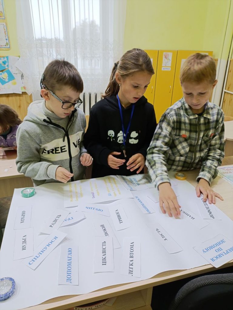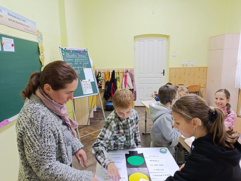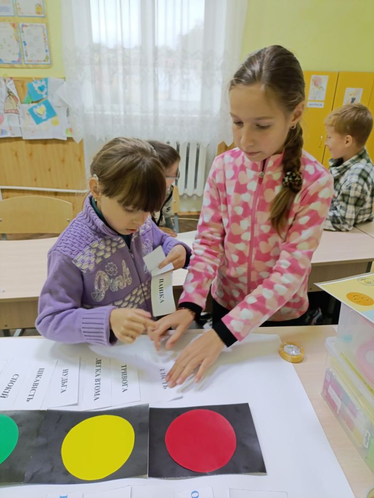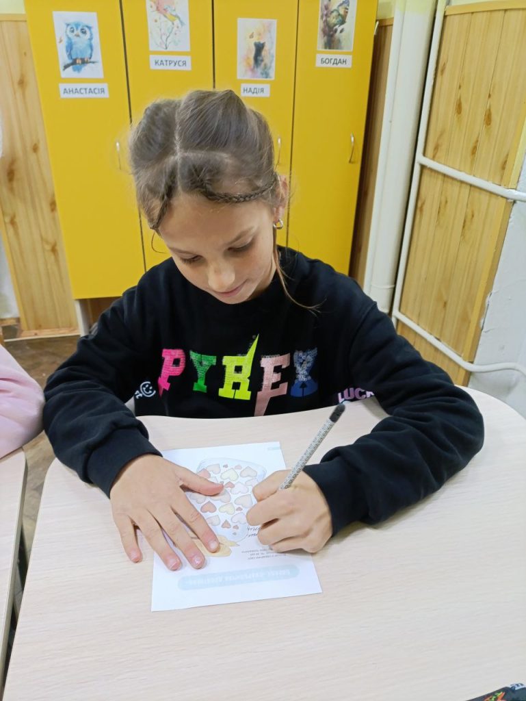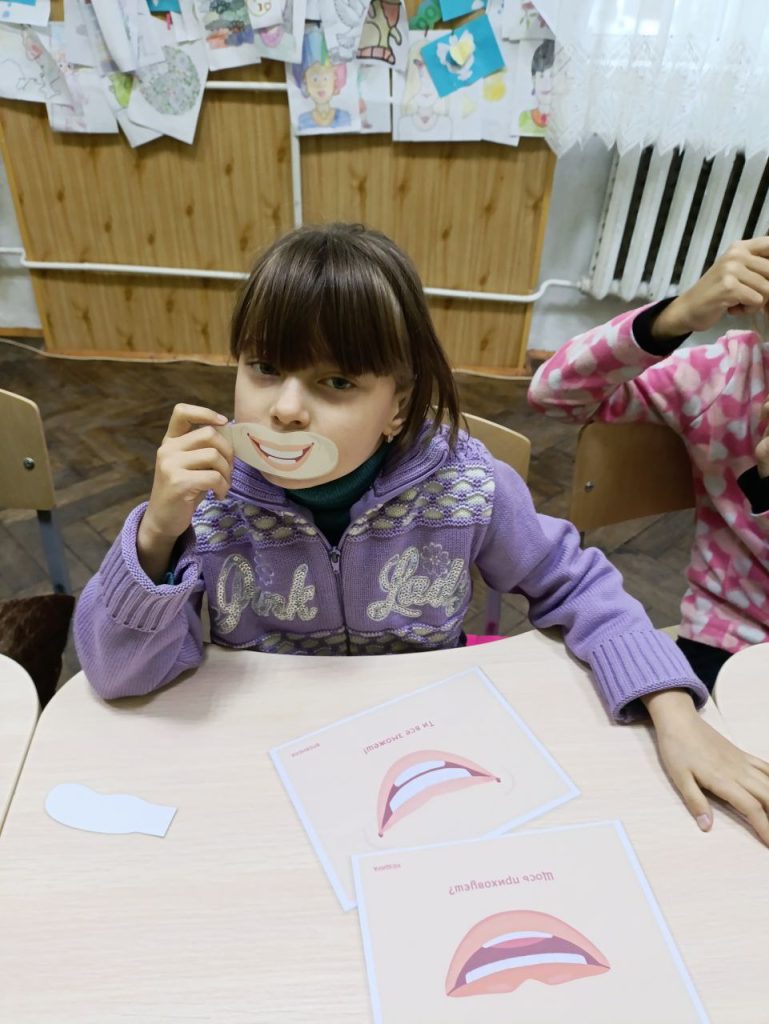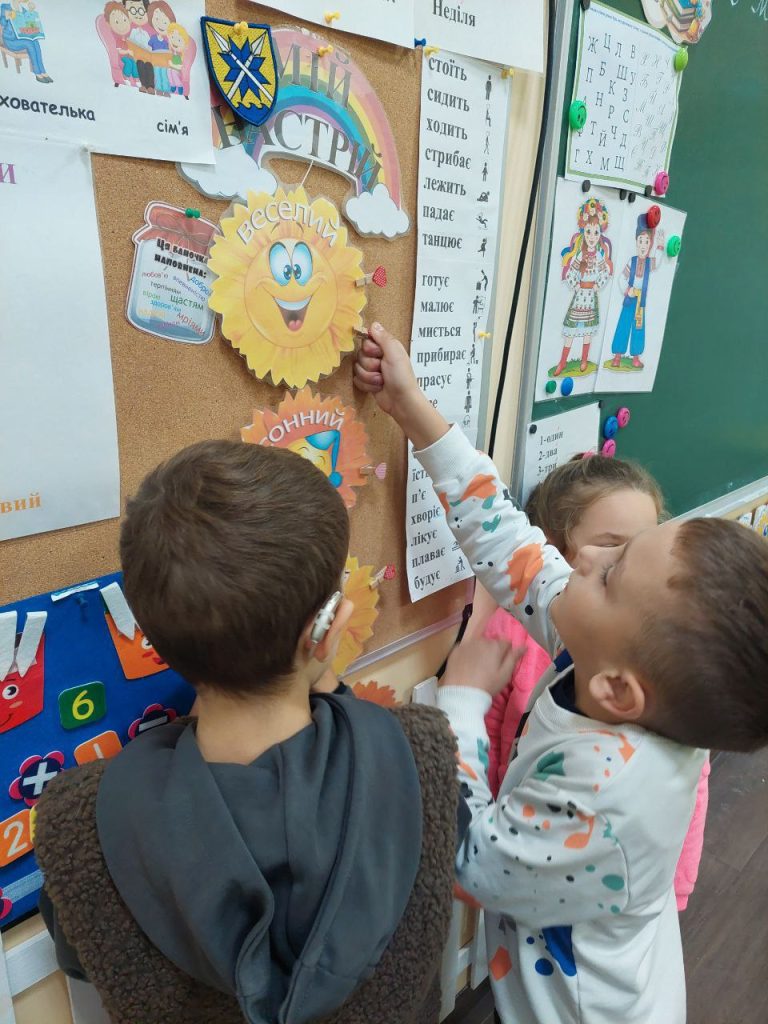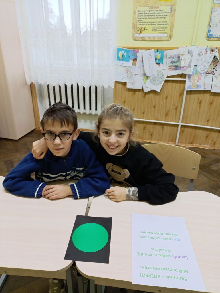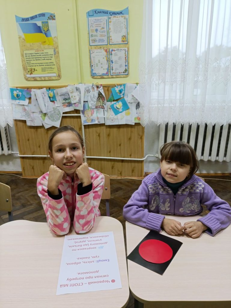 Діти брали участь у конструктивній грі “Мій світлофор ментального здоров’я”, виконували вправи “Сила усмішки”, “Обійманці”, “Картки сили” від Світлани Ройз, техніку “Дзеркало 10 емоцій”, створили аплікацію “Світ емоцій”, переглядали відеоролик “Емоції з рибками”.