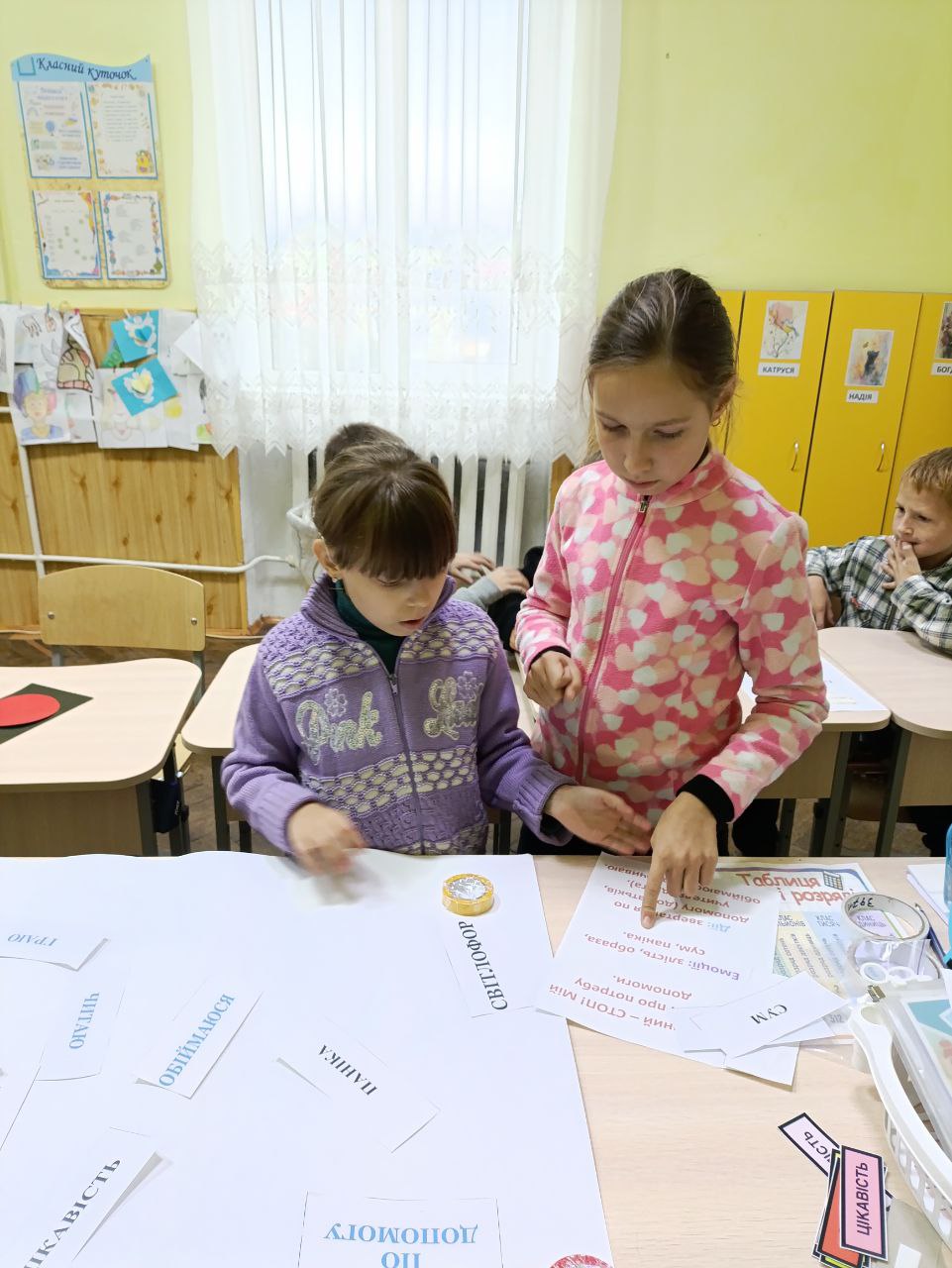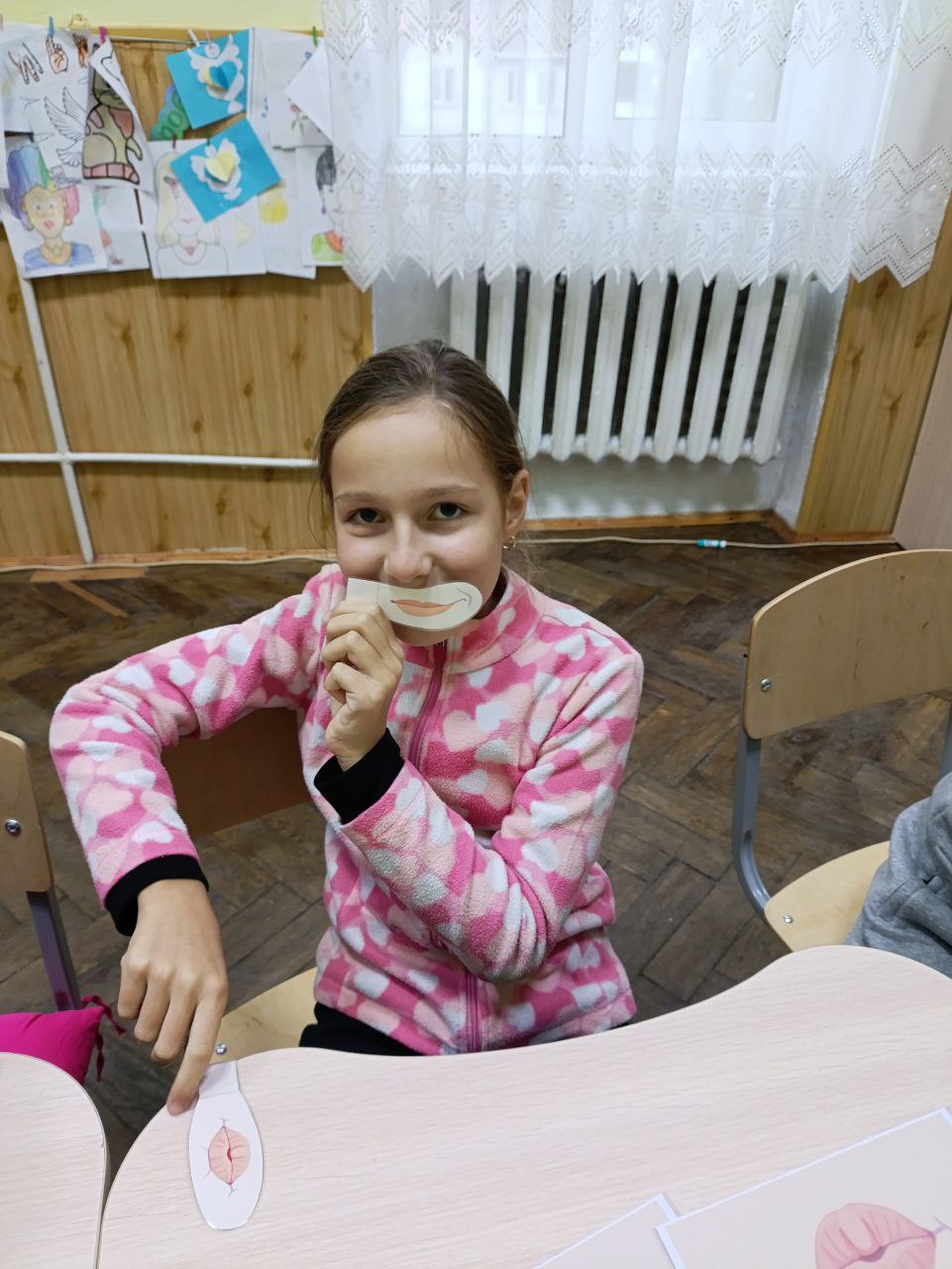 Діти брали участь у конструктивній грі “Мій світлофор ментального здоров’я”, виконували вправи “Сила усмішки”, “Обійманці”, “Картки сили” від Світлани Ройз, техніку “Дзеркало 10 емоцій”, створили аплікацію “Світ емоцій”, переглядали відеоролик “Емоції з рибками”.
