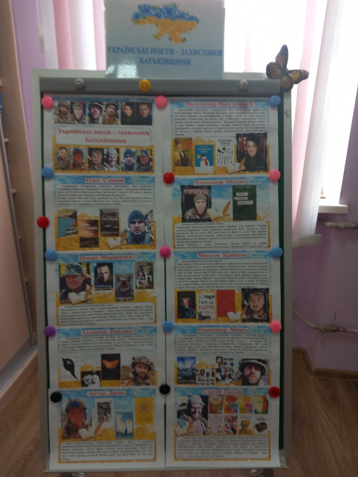 Інформаційний банер “Українські поети – захисники Батьківщини “. Ми переконані, що сьогодні українська мова виступає як наша зброя і сила, яка об’єднує українців та весь світ.Продовжуємо знайомитись з творчістю письменників, журналістів – захисників України.