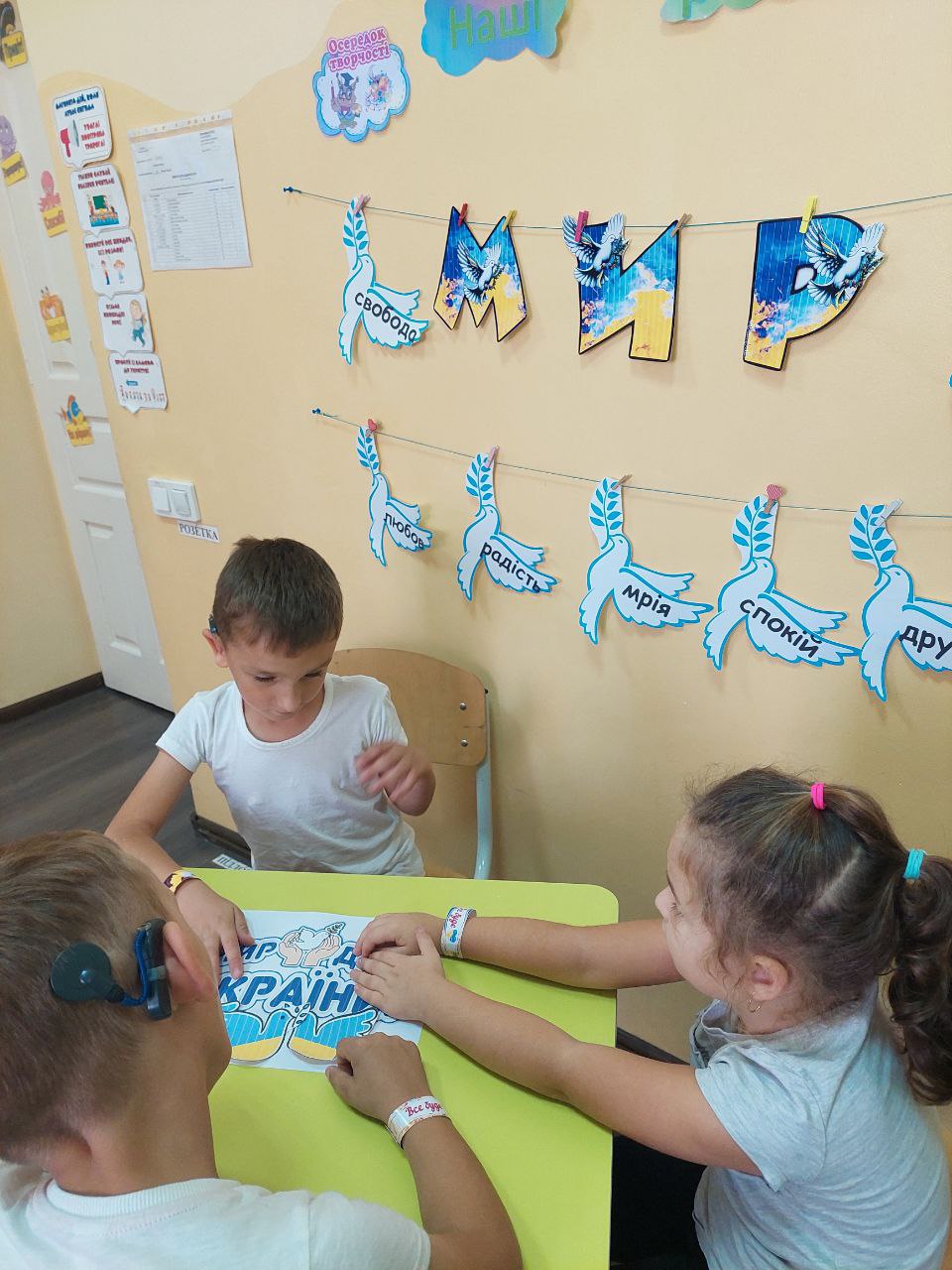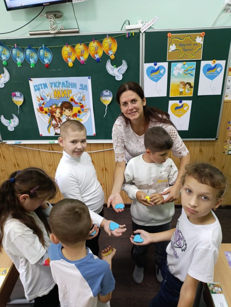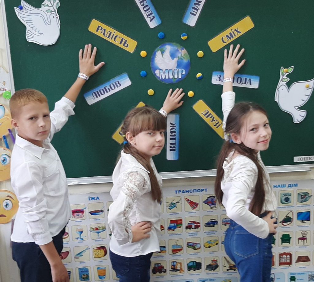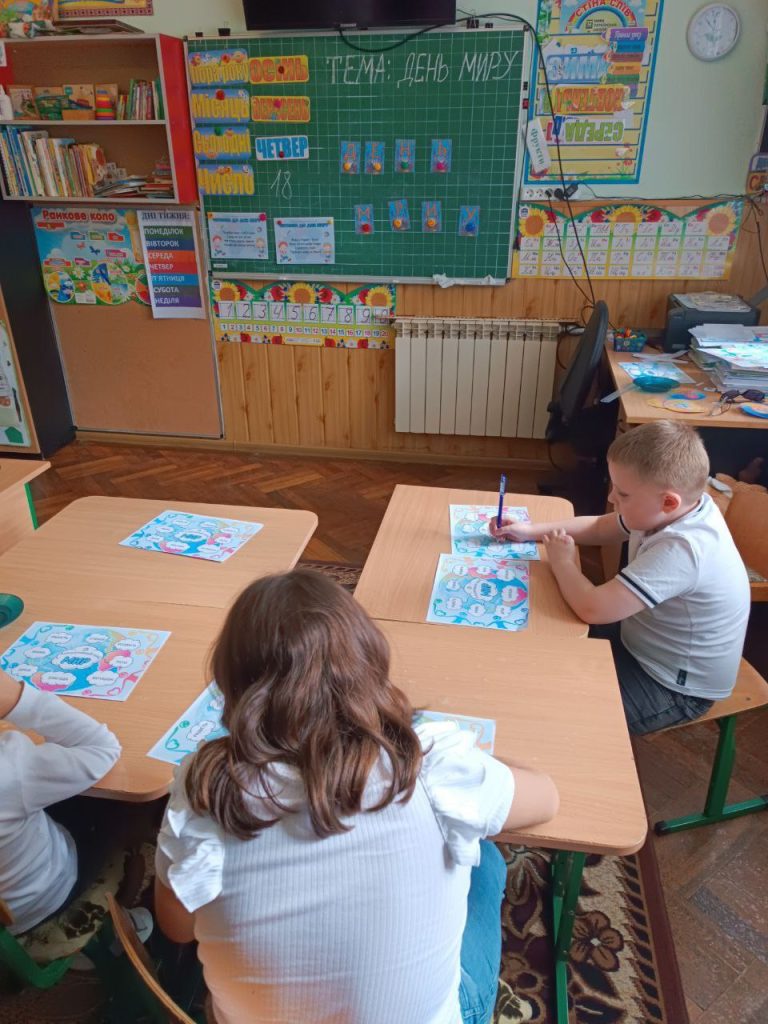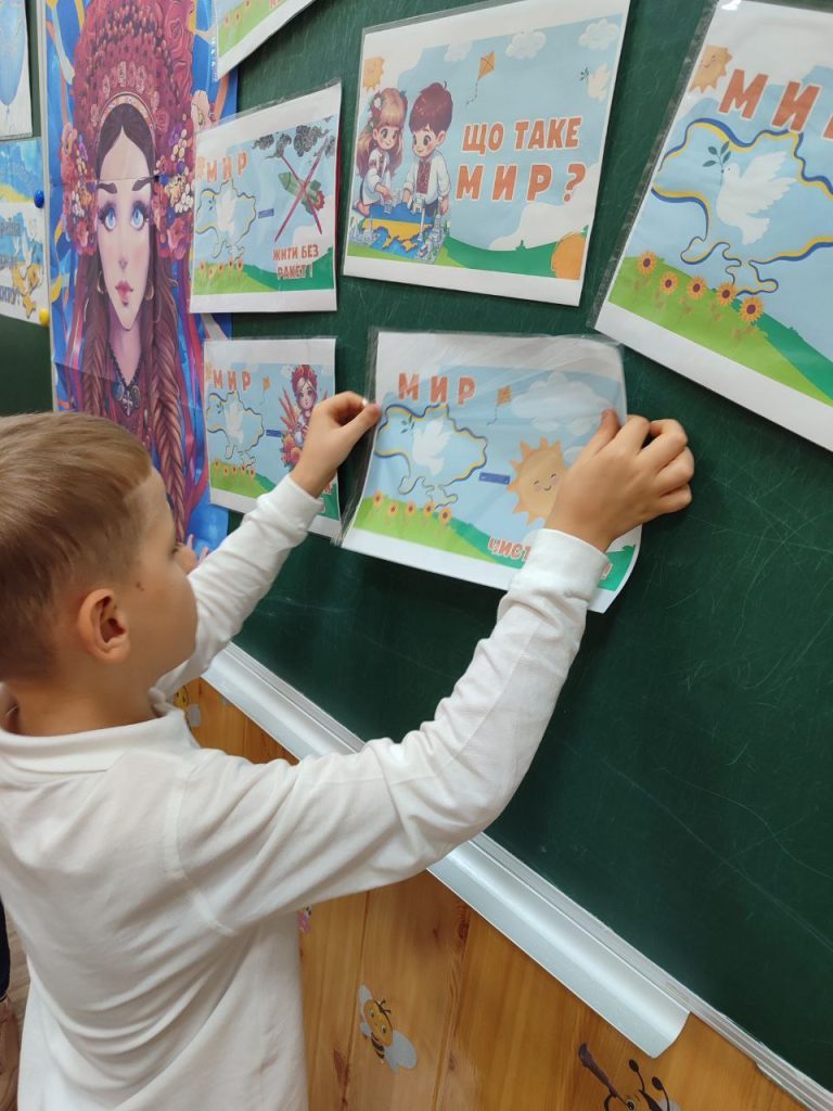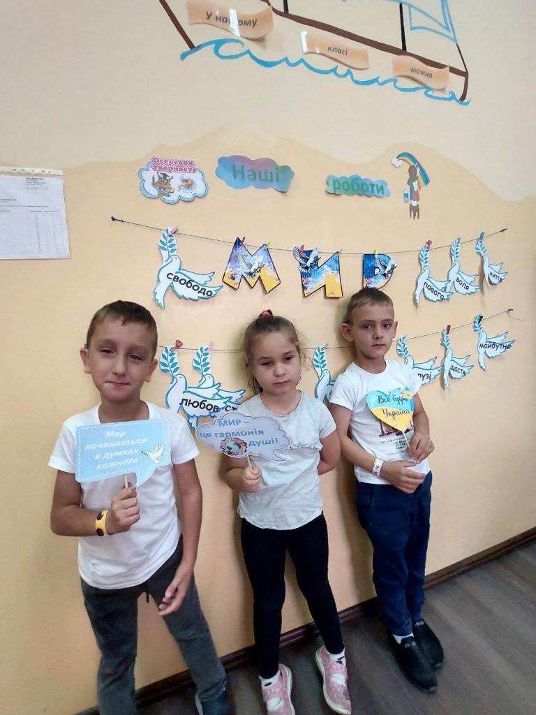 Учні початкової школи та педагоги об’єдналися, щоб показати, що мир починається з кожного з нас. Вони виготовили тематичну композицію “Голуб Миру” та 3D-аплікацію “Віночок Миру”, створили  колаж “Промені Миру” та намалювали патріотичні малюнки.