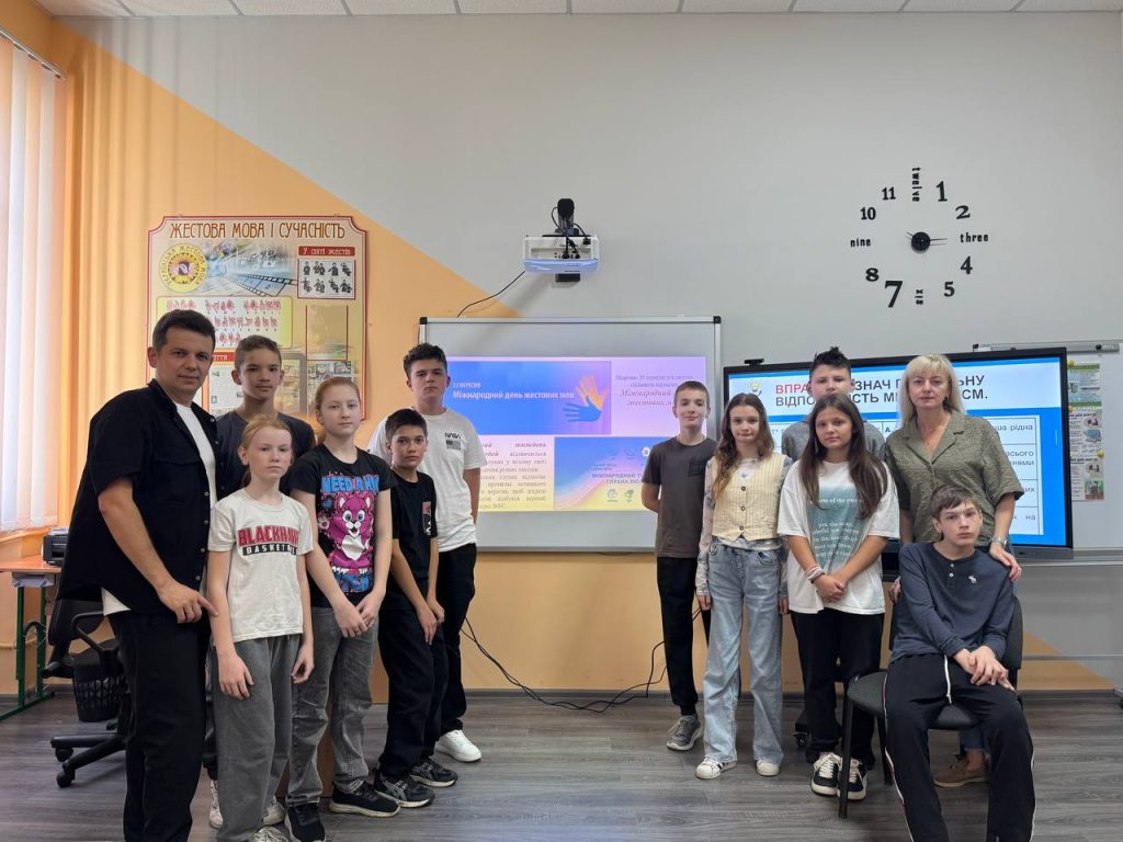 В цей день у нашому закладі діти взяли участь у тематичному уроці «Жестова мова наживо: перевір себе і друзів», майстеркласі «Моя улюблена абетка жестів», бінарному уроці «Багатство жестової мови».